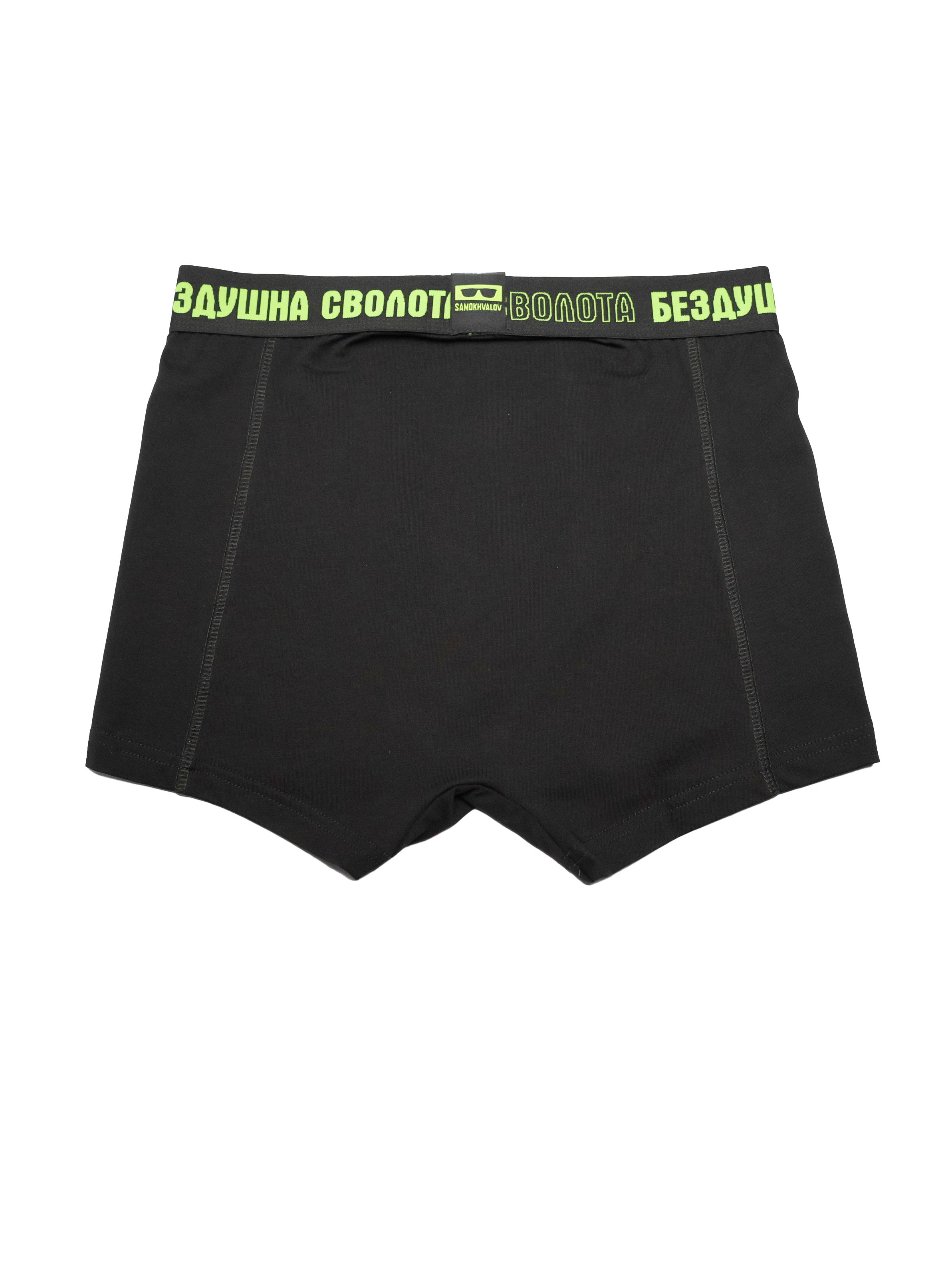 Чоловічі боксери виготовлені із високоякісної натуральної бавовни, що дарує максимальний комфорт. Широка резинка із яскравим неоновим написом «Бездушна сволота» забезпечує надійну підтримку.