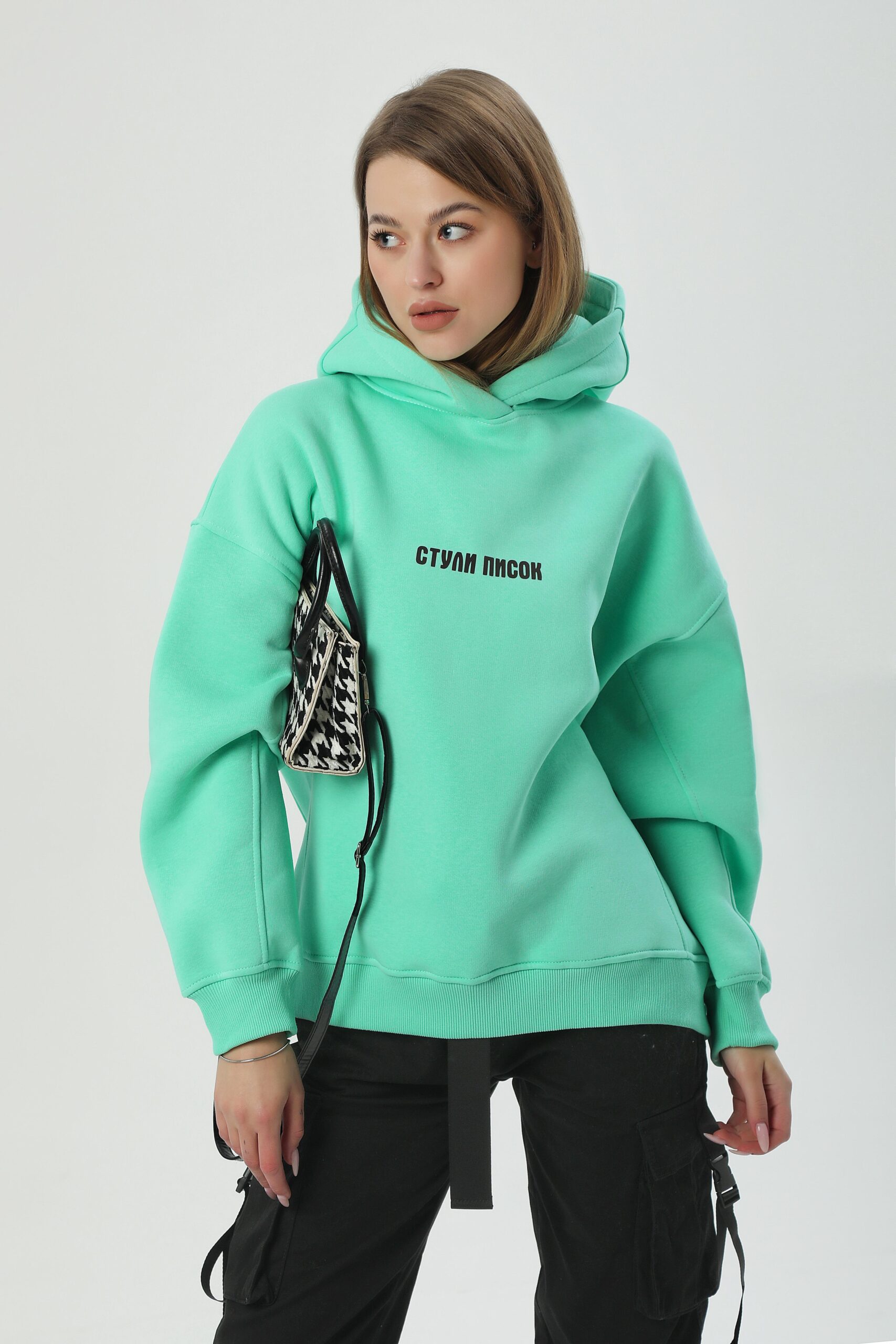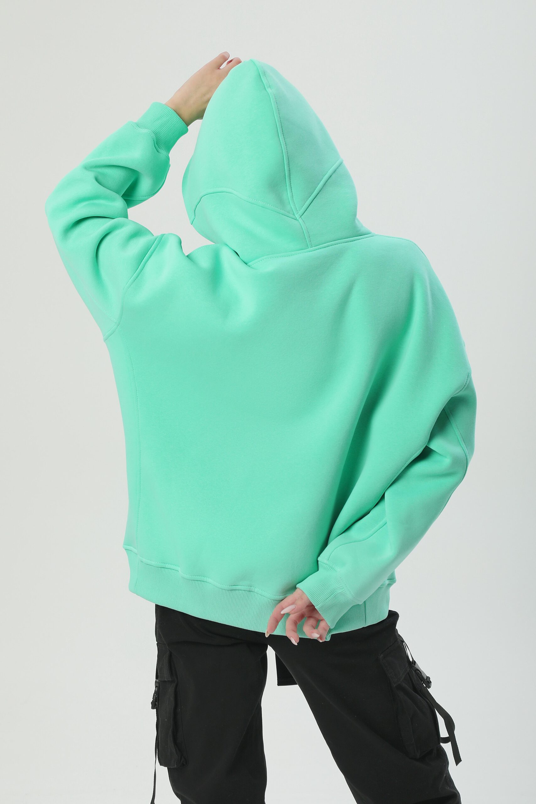 Худі унісекс силуету оверсайз. Виготовлене з важкої фактурної утепленої бавовни з начісом. Конструкція включає додатковий обʼєм для тіла та рукавів, щоб створити округлу та розслаблену форму в образі. Принт – голографічна термотрансферна резина. Завдяки високим тискам наноситься на тканину і є практично вічним.